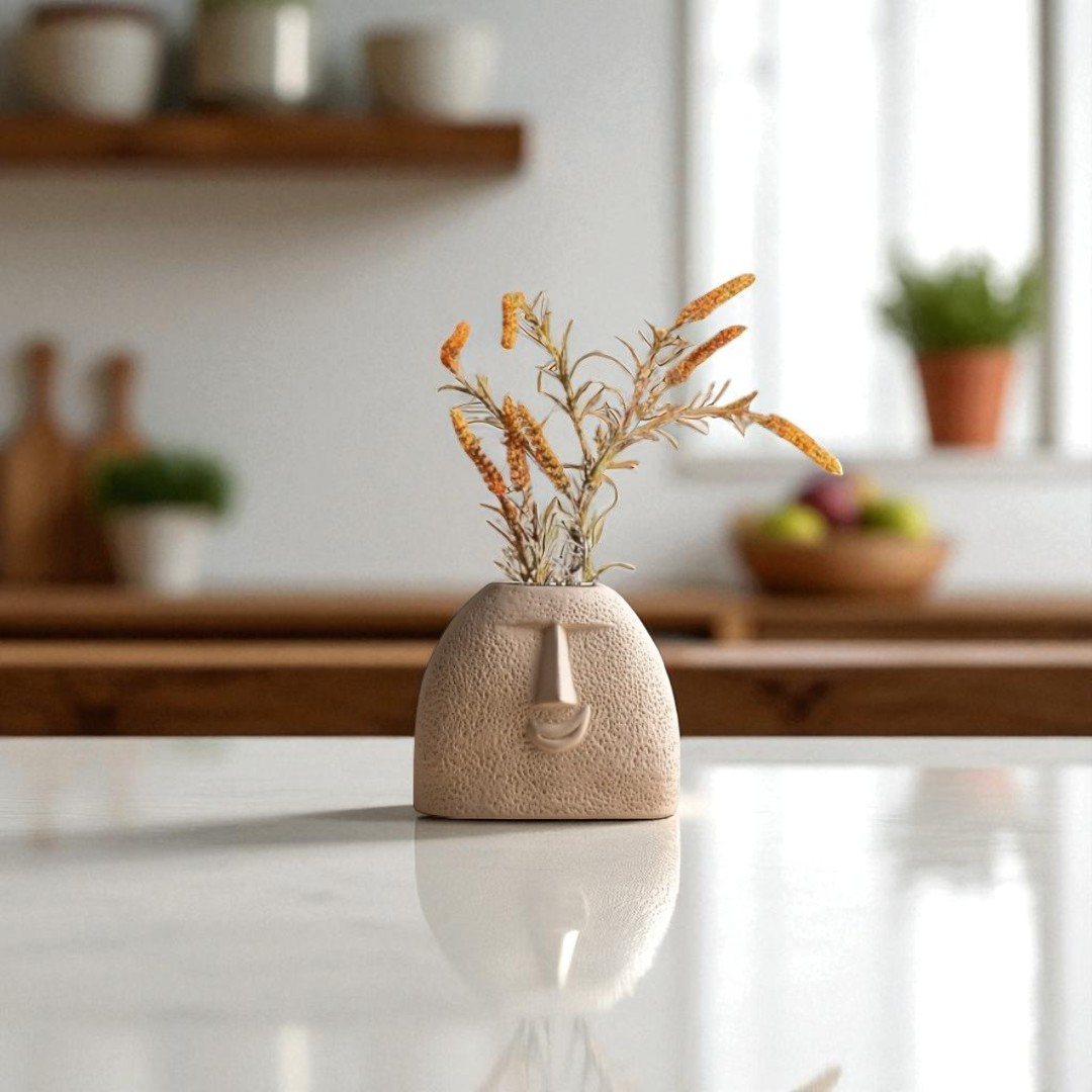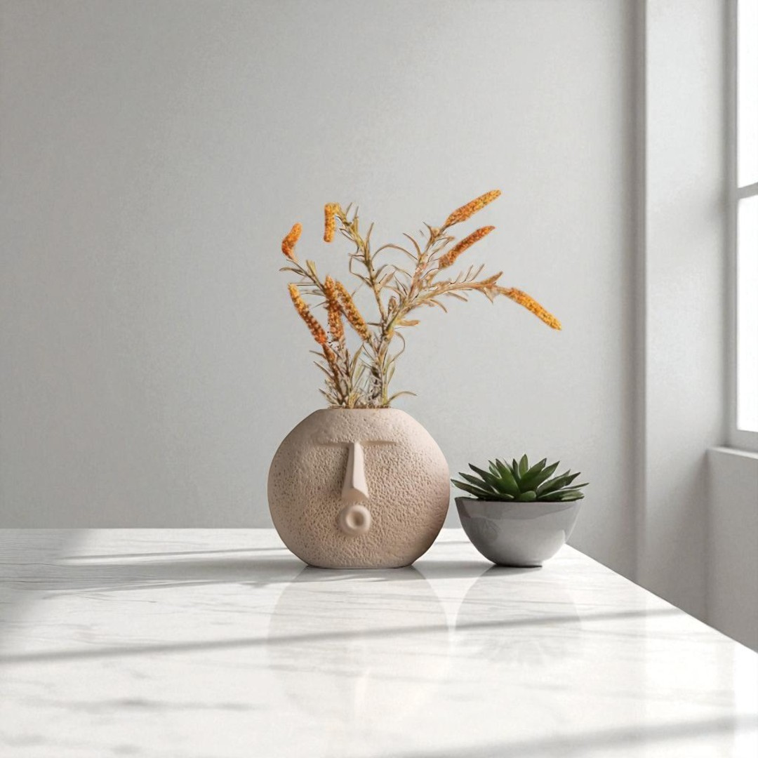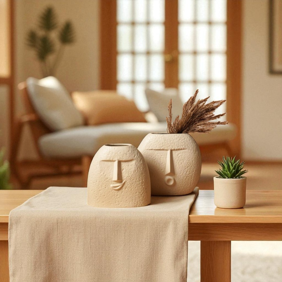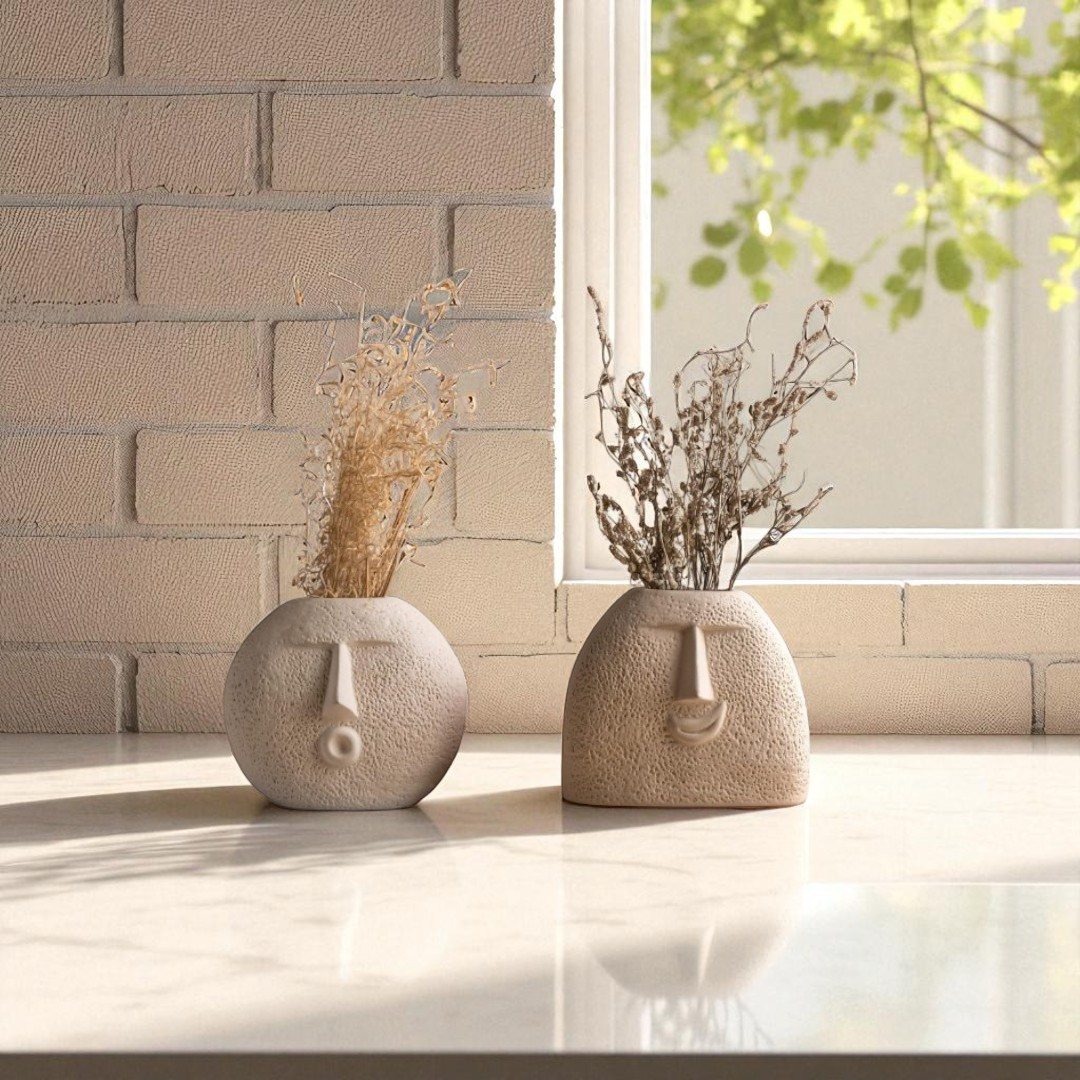 Add a touch of artistic flair to your space with this Abstract Face Ceramic Vase Set. Featuring two unique vases with expressive, sculpted facial features, this set blends modern minimalism with creative design. The natural, textured ceramic finish and neutral tones make these vases a perfect accent for any room — from boho-inspired interiors to clean, contemporary spaces.