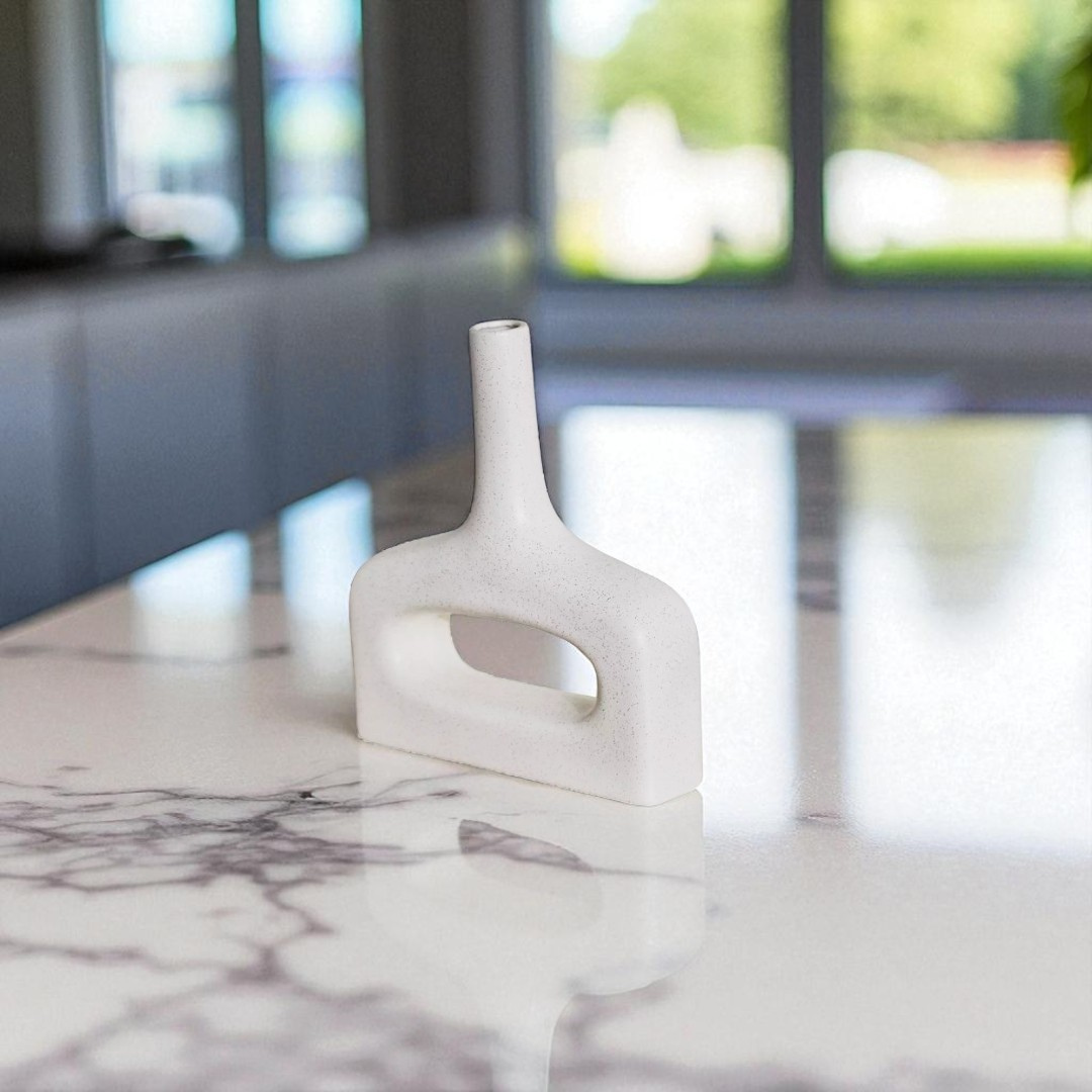 Elevate your décor with this sculptural hollow ceramic vase, a true statement piece for lovers of modern minimalism. With its soft matte finish and geometric cutout design, this vase brings a sense of calm and curated elegance to any space.