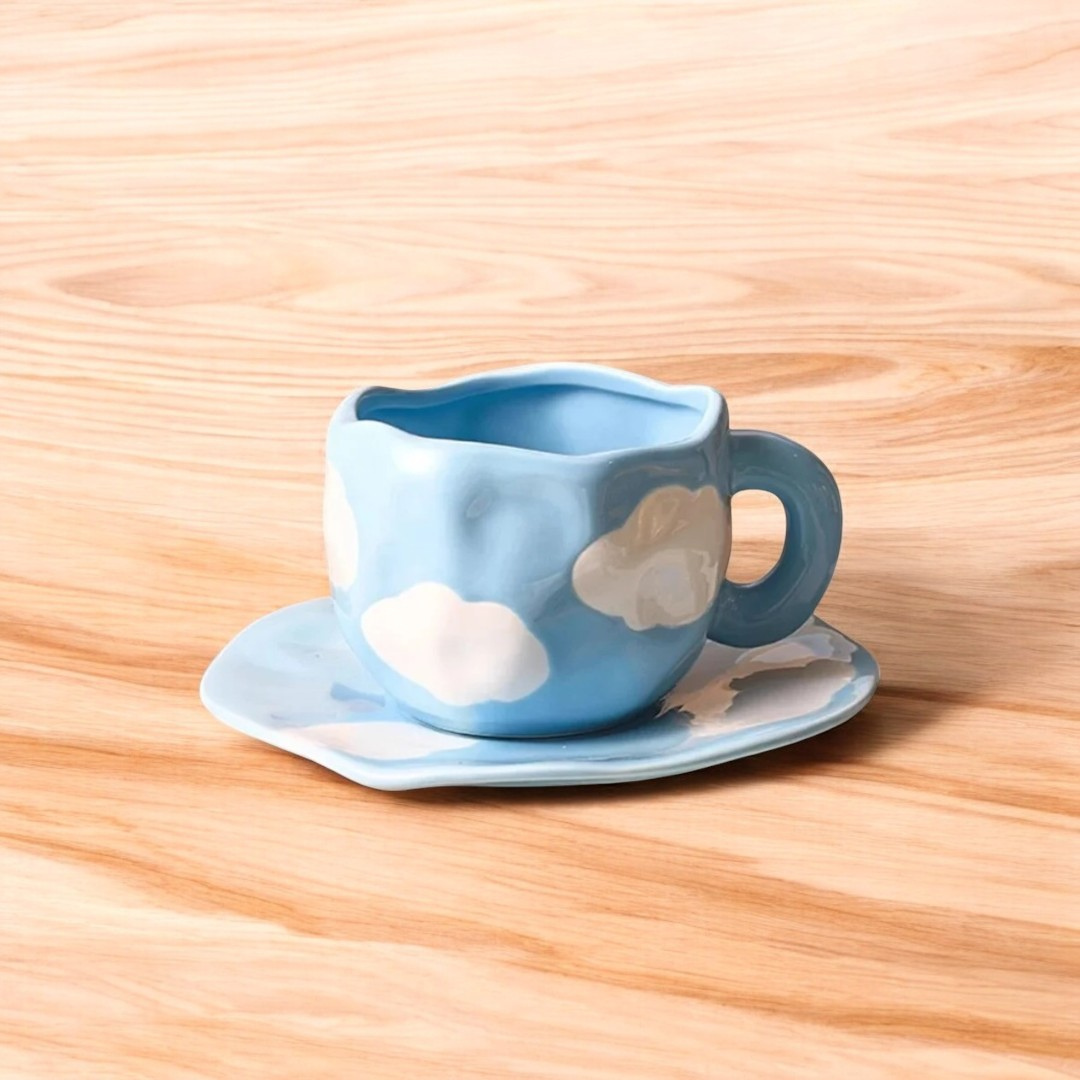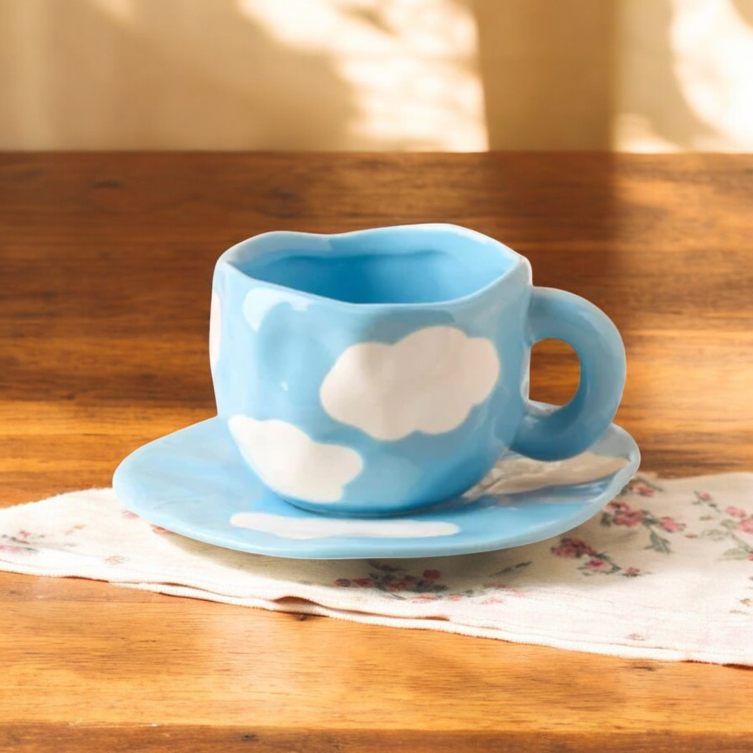 Blue Sky Ceramic Mug with Saucer