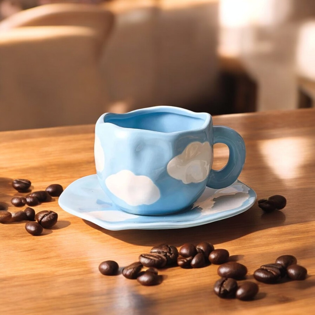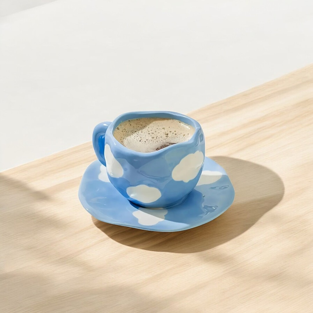 Brighten up your coffee time with the Blue Sky Cup & Saucer! This cheerful ceramic set adds a playful touch to your mornings, making every sip a little more delightful. Perfect for coffee, tea, or espresso, it's a fun and charming addition to your drinkware collection.