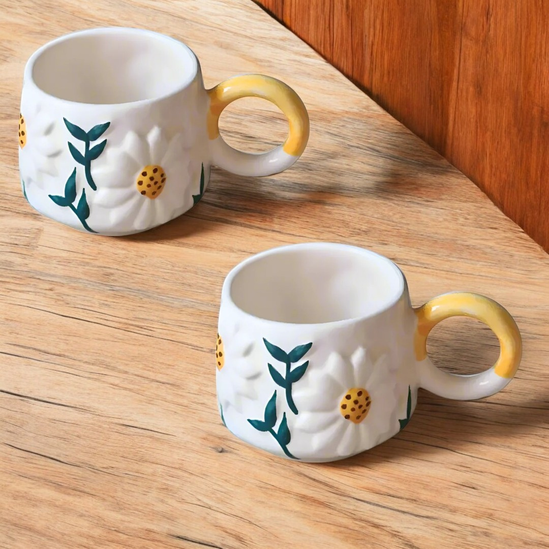 Floral Ceramic Coffee Mug - Set of 2