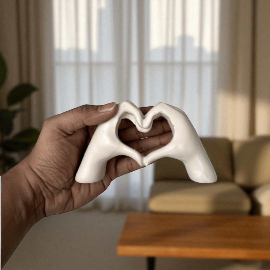 Express love and connection with this striking heart gesture hand sculpture. Designed in a sleek and minimal style, this decor piece captures a universal symbol of affection through the elegant form of two hands forming a heart.
