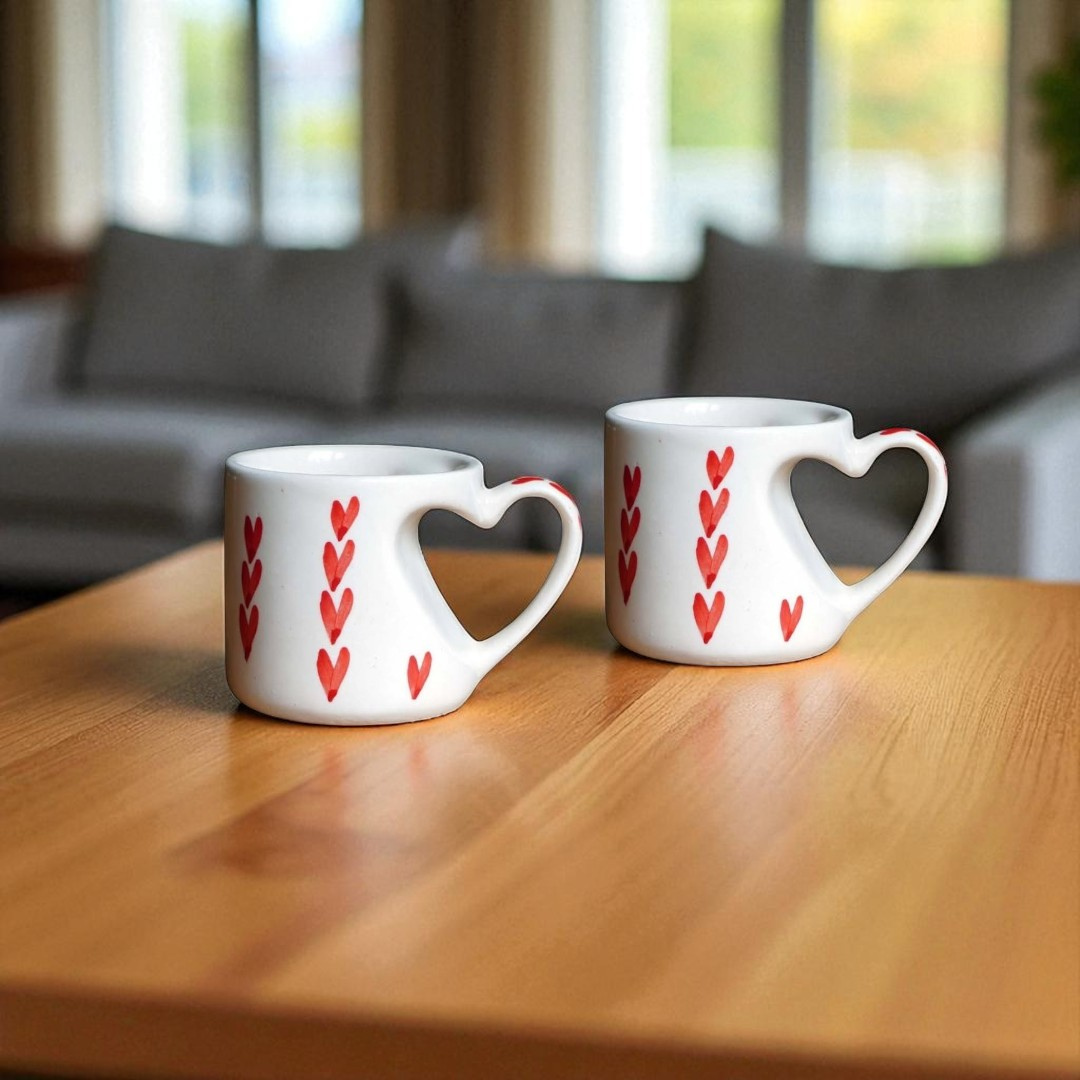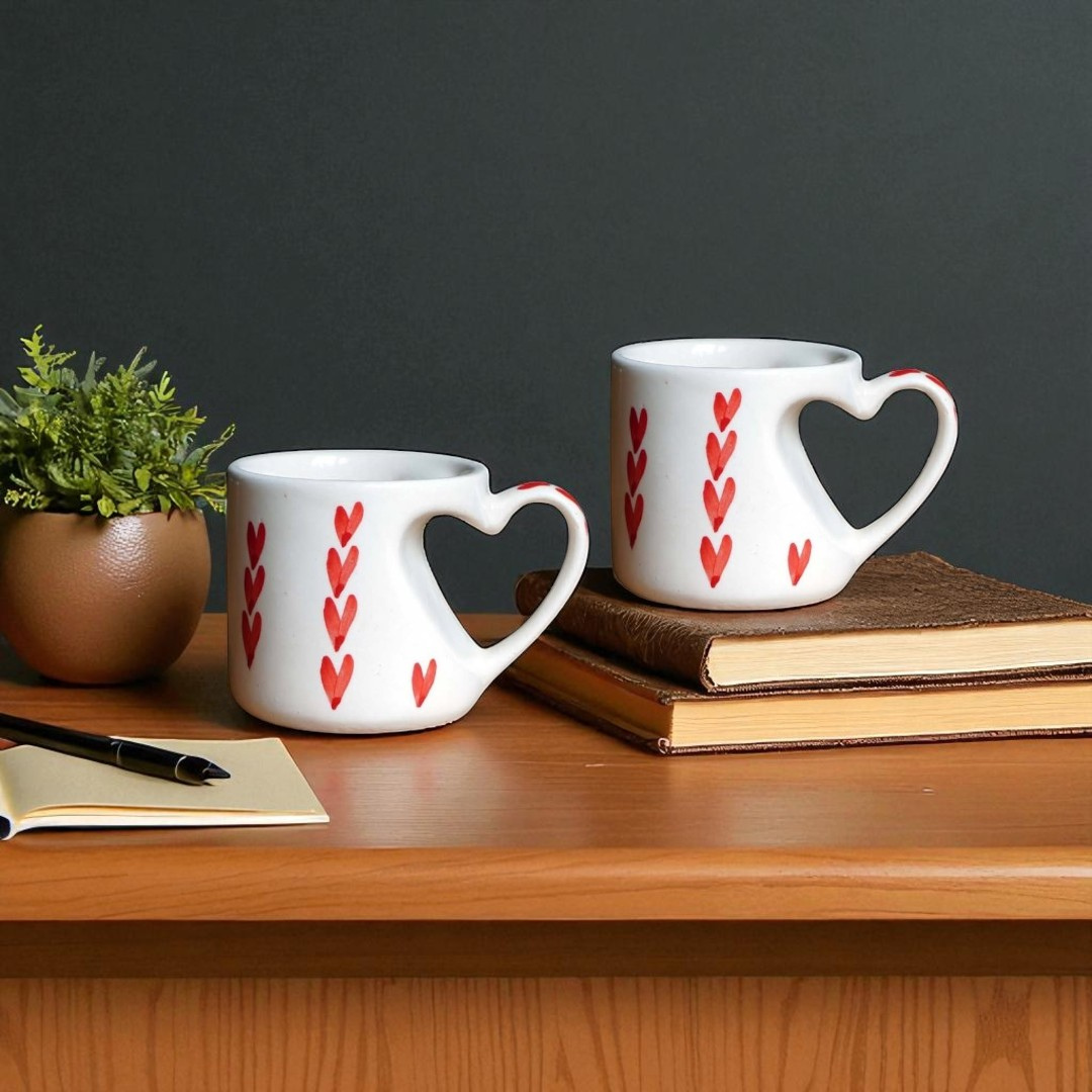 Heart Handle Ceramic Coffee Mug - Set of 2