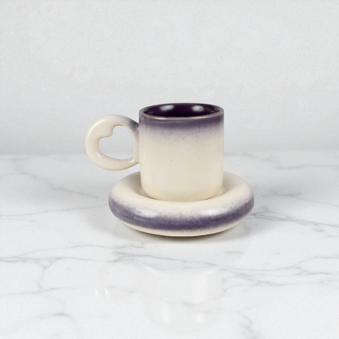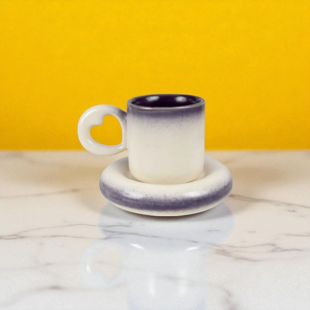 Elevate your coffee experience with this beautifully crafted ceramic mug, designed with a soft cream-to-black gradient and a unique heart-shaped handle. The accompanying matching saucer adds both elegance and practicality, making it perfect for daily use or display.