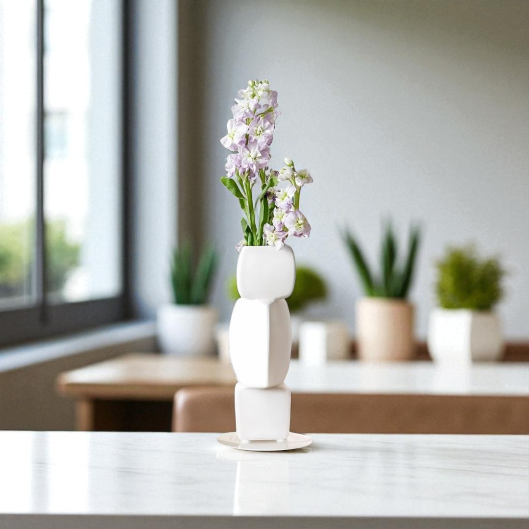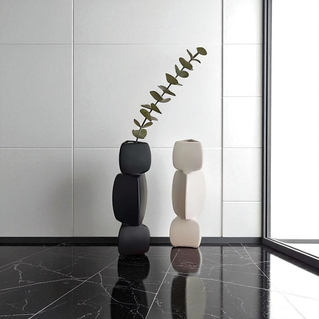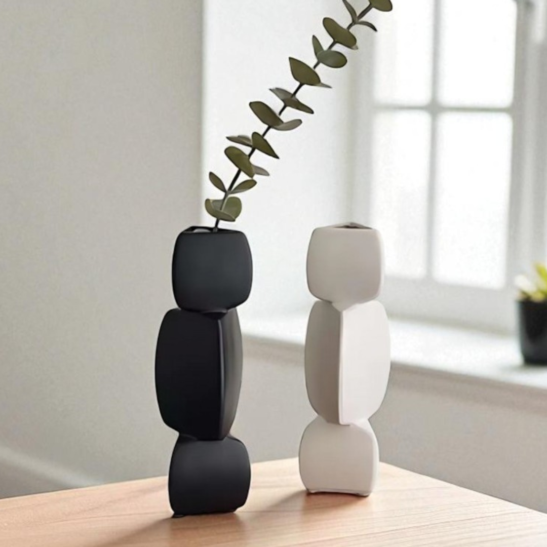 Make a bold statement with this matte finish stacked-stone vase. Featuring a minimalist sculptural design, the vase mimics a tower of smooth pebbles, bringing a sense of calm and artistic tension to any space.