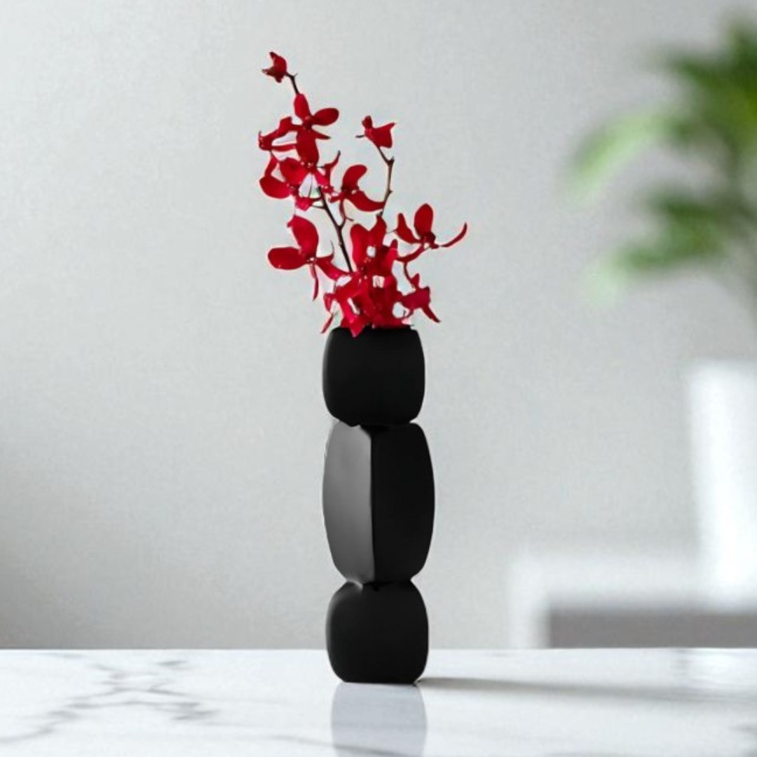 Perfect for showcasing vibrant blooms like orchids or as a dramatic standalone piece, this vase is ideal for modern, industrial, and Japandi-inspired interiors.