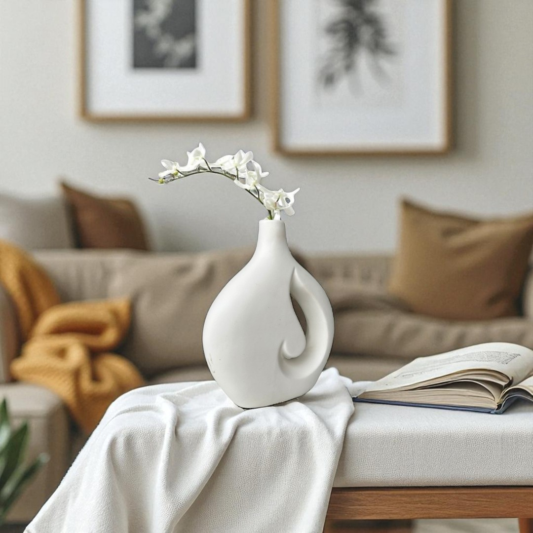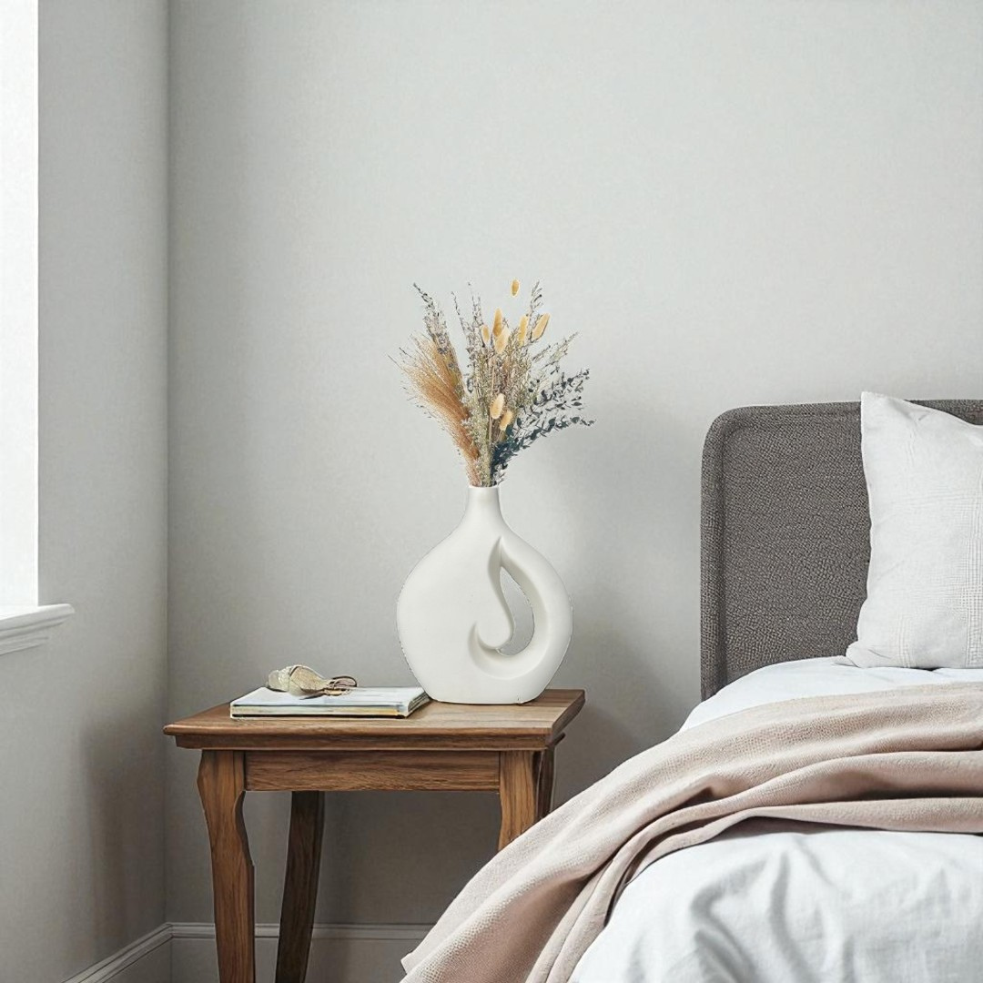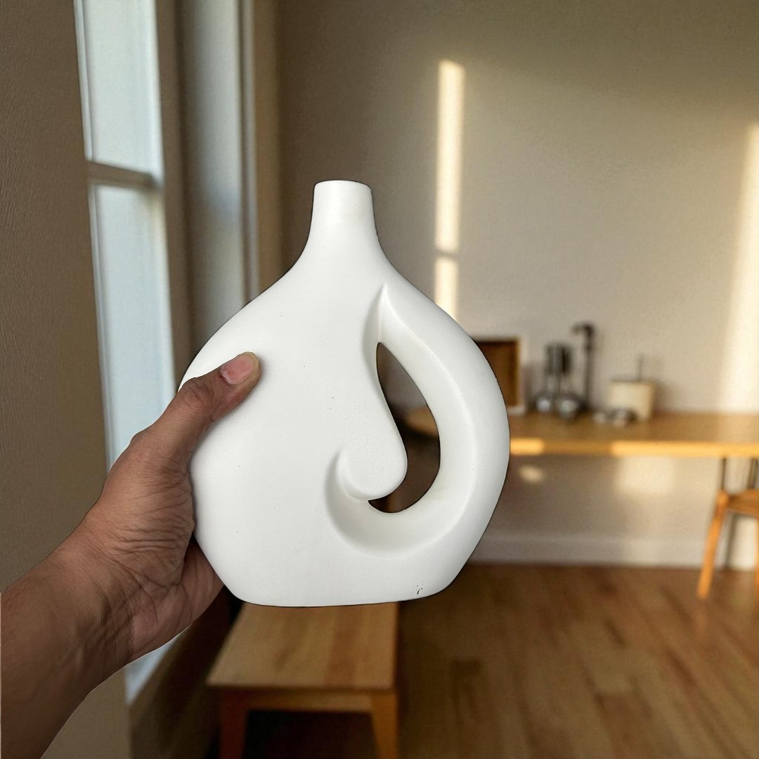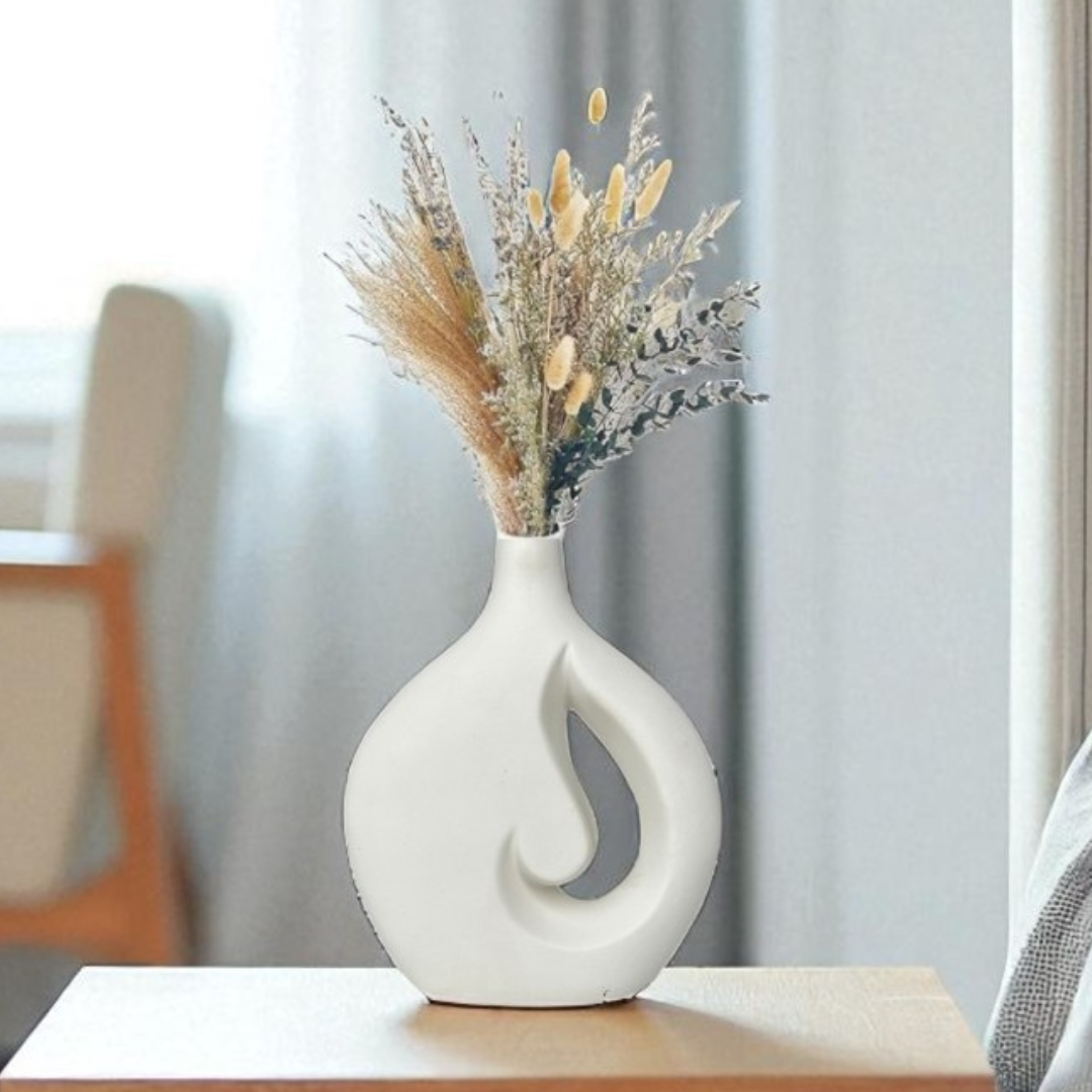 The Serenity Swirl Vase is a modern, minimalist ceramic vase that enhances any space with its elegant and artistic design. Featuring a unique hollow swirl shape, it adds a touch of sophistication to living rooms, bedrooms, or office decor. Perfect for displaying dried flowers, pampas grass, or as a standalone statement piece, this vase blends effortlessly with contemporary and Scandinavian interiors.