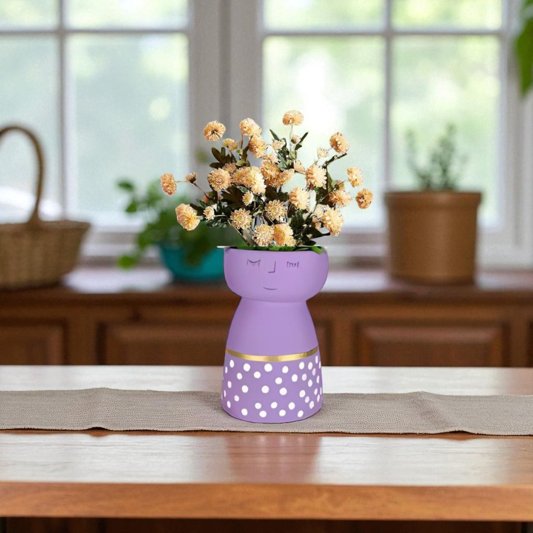 Brighten up your space with this charming Girl Face Vase, a playful and stylish décor piece perfect for modern interiors. Designed in a soft lavender hue with hand-drawn facial features and a white polka dot dress design, this ceramic vase adds a fun, feminine touch to shelves, desks, or windowsills.